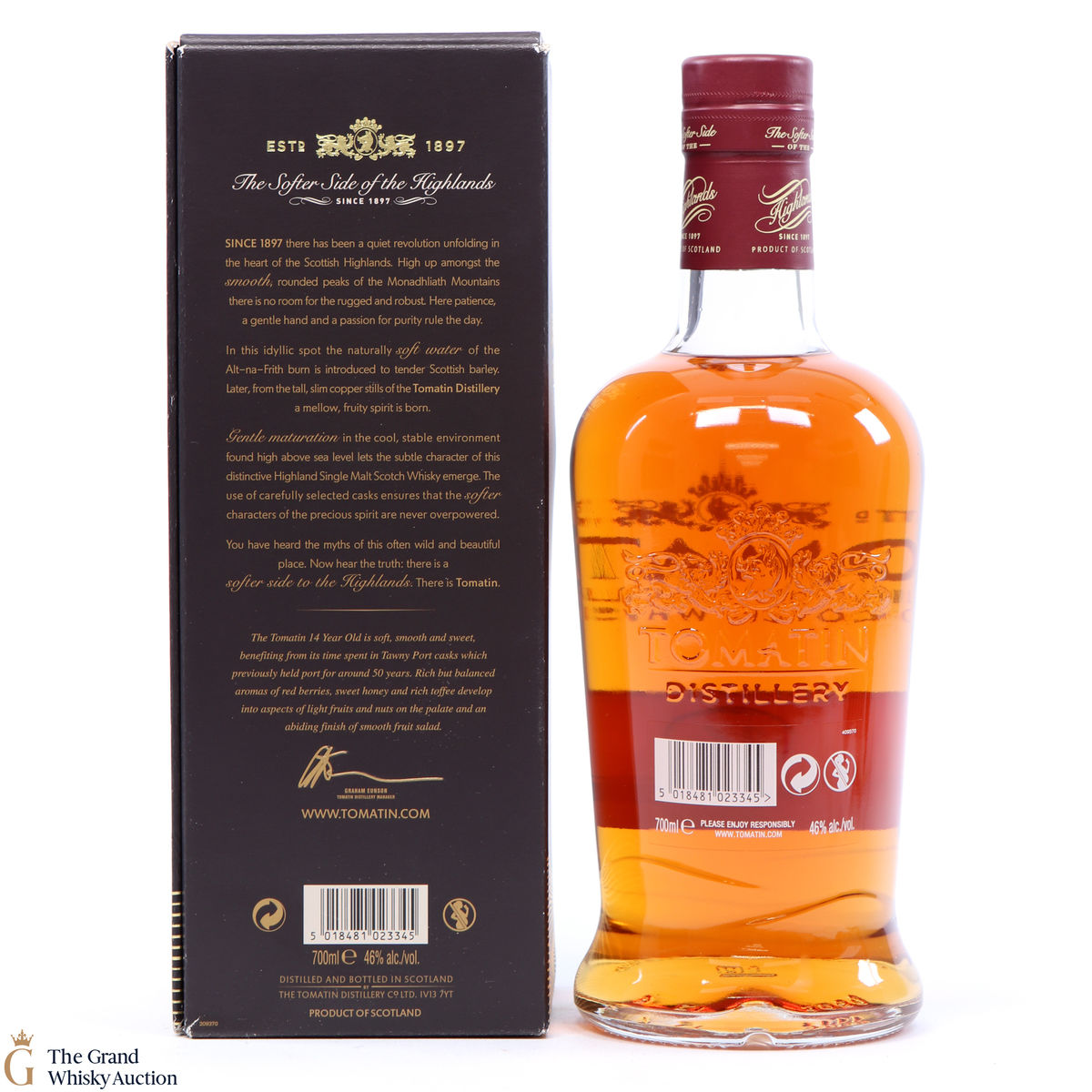 The Tomatin 14 Year Old was introduced to the core range in 2014. Matured in bourbon barrels and selected Port casks, imparting wine-like sweetness to the whisky.