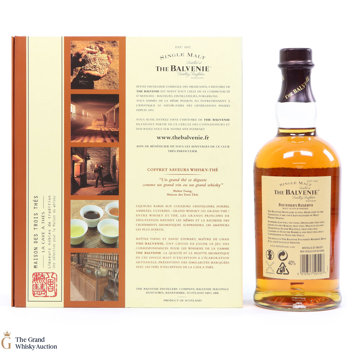 A La Maison du Whisky gift set that includes Yun Hong tea from Maison des Trois Thes et La Cave a Thes and a 70cl of Balvenie 10-Year-Old Founder's Reserve.