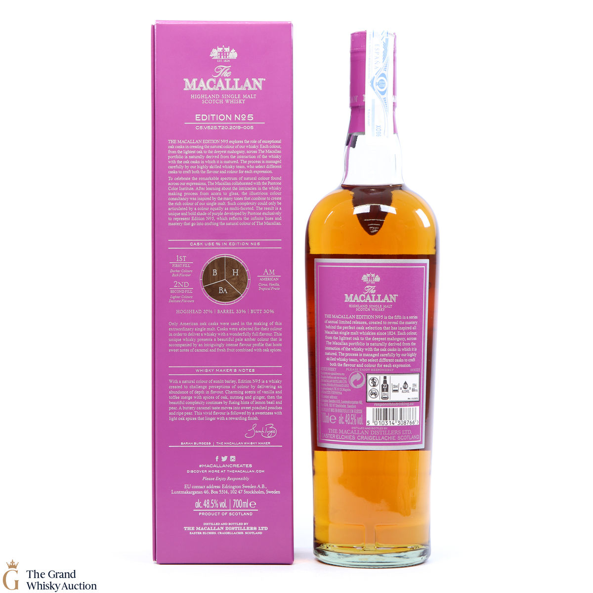 The fifth release in the Edition Series from The Macallan, The Macallan Edition No. 5 celebrates The Macallan’s extensive natural colour spectrum and the intricate whisky-making process, in partnership with masters at the Pantone Color Institute™ to create a unique shade of purple that features on the packaging.