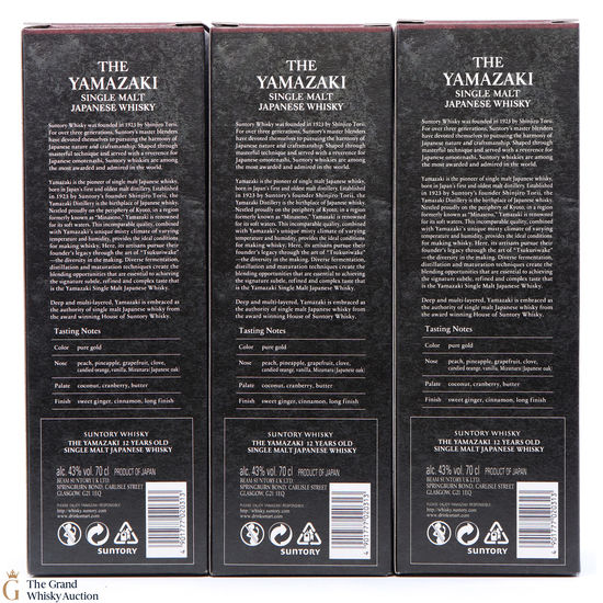 This lot includes 3 x 70cl bottles of Yamazaki - 12 Year Old.