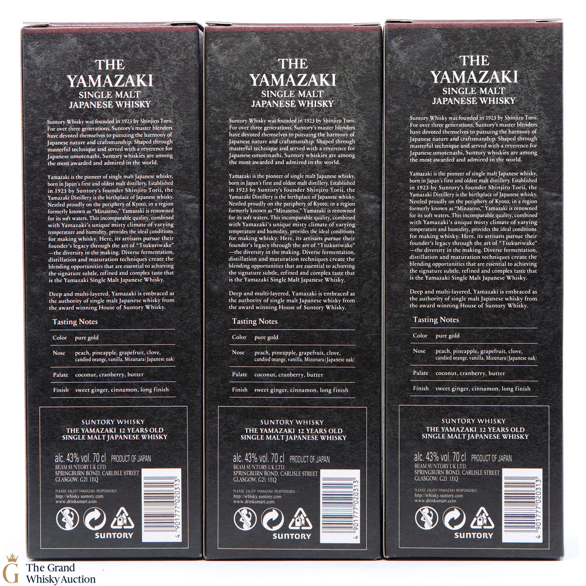 This lot includes 3 x 70cl bottles of Yamazaki - 12 Year Old.