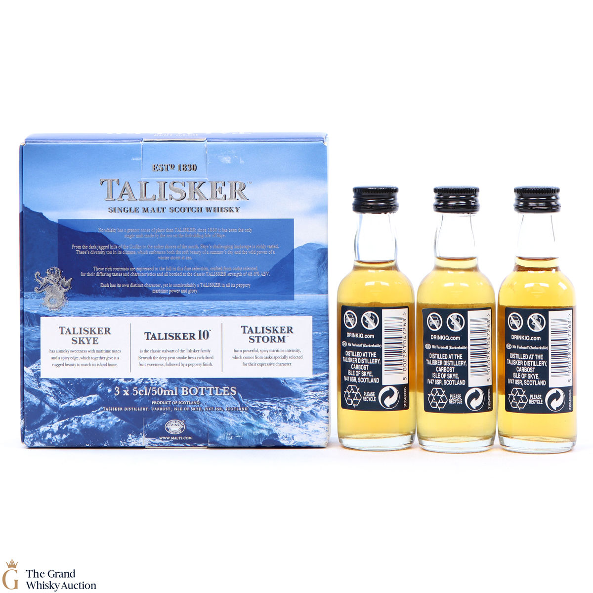 This lot contains 3 x 5cl bottles, Talisker Dark Storm, Talisker 10, Talisker Skye.