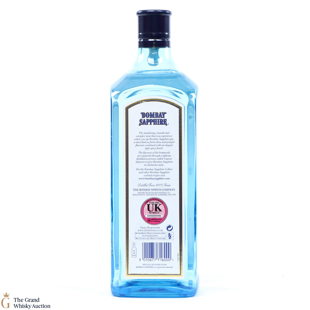 A very popular gin, known for its unique vapour-infusion process this bottle of Bombay Sapphire London Dry gin is made of 10 precious botanicals. This is a 1L bottling at 40% ABV.