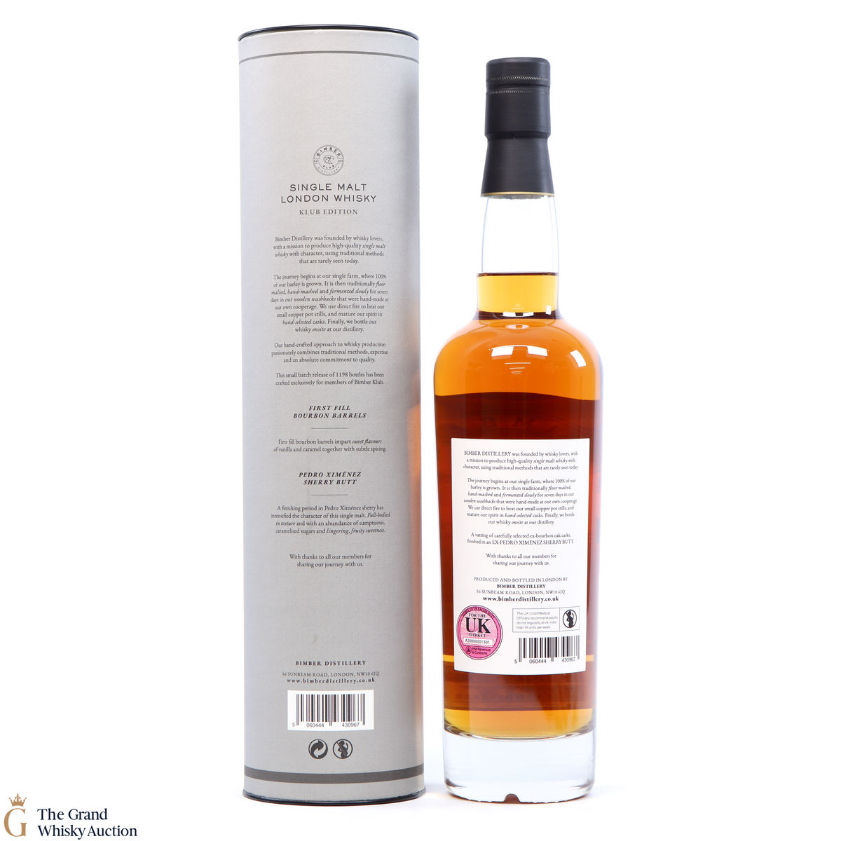 This Bimber release was bottled exclusively for the Bimber Klub. Matured firstly in ex-bourbon casks then transferred to a Pedro Ximenez sherry butt. This is one of just 1,198 bottles released at 52.8% free from chill-filtration and artificial colouring.
