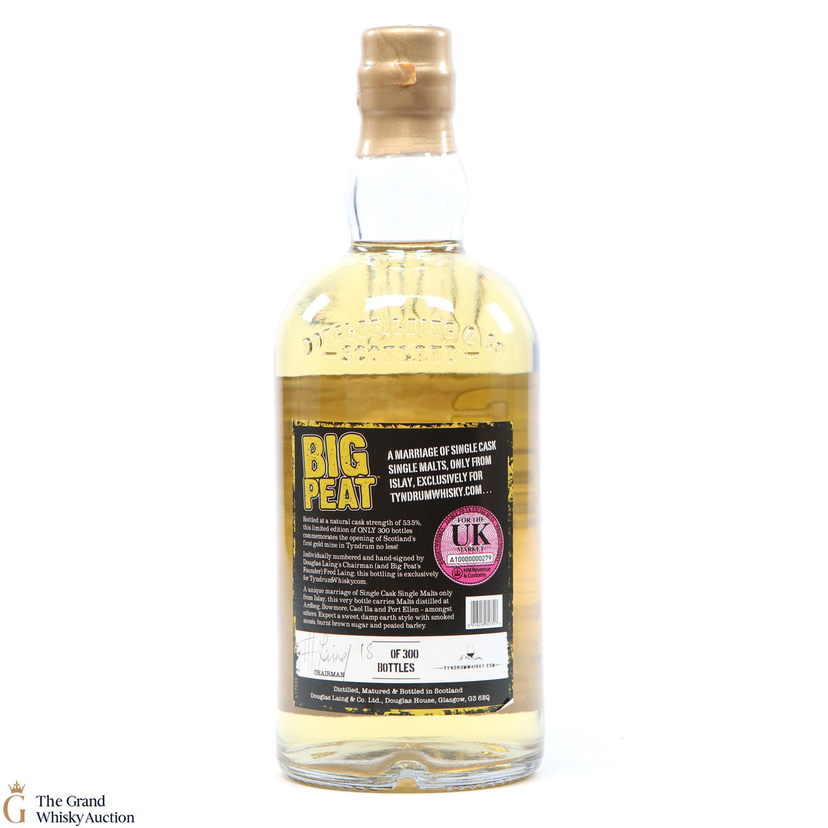 This limited edition release of Pig Peat is one of only 300 bottles created to commemorate the opening of Scotland's first gold mine in Tyndrum. Bottled at a natural cask strength of 53.5%. It is a blended Islay malt, released by Douglas Laing.