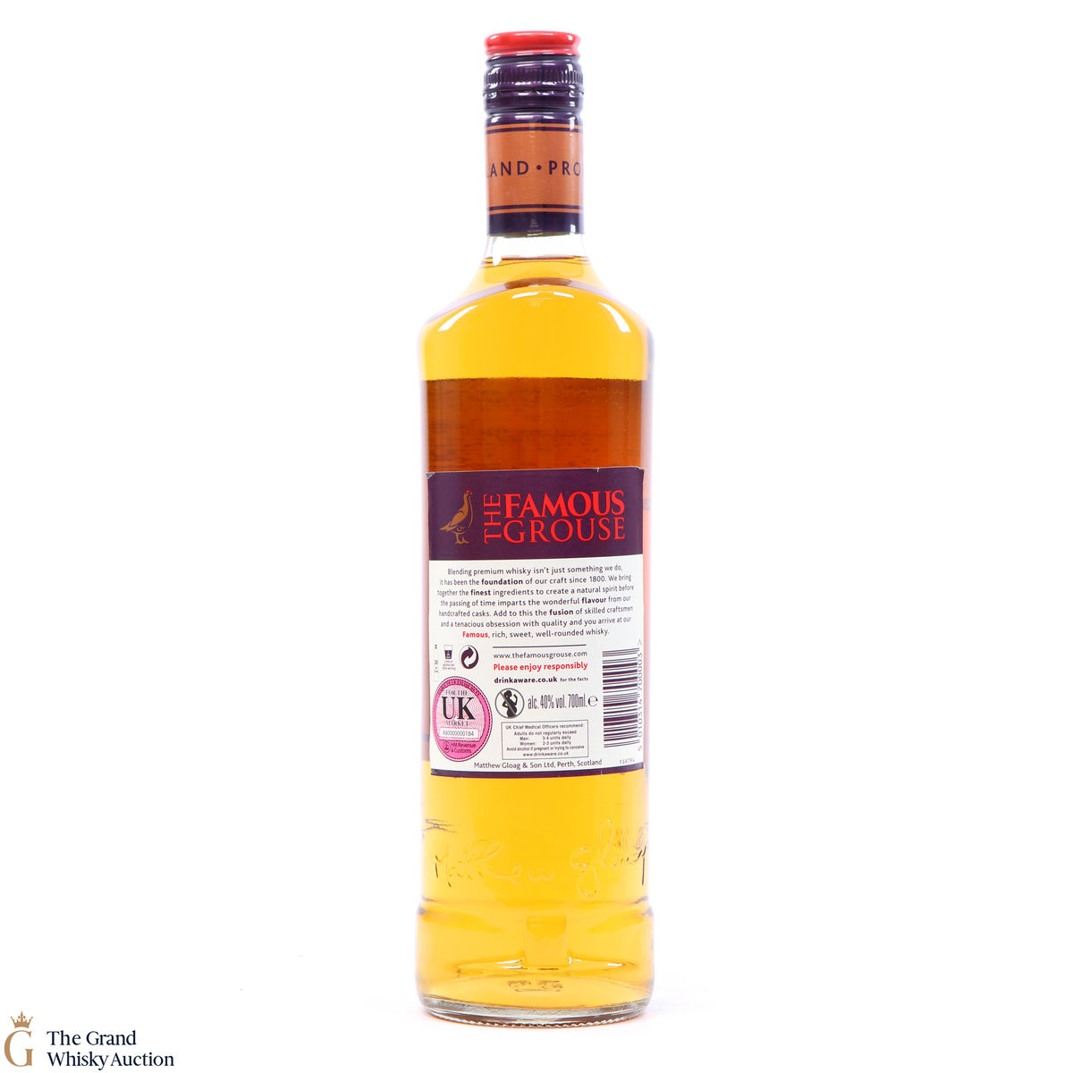 Famous Grouse blended scotch whisky was first produced by Matthew Gloag & Son Ltd in 1896, and is currently produced and owned by The Edrington Group.