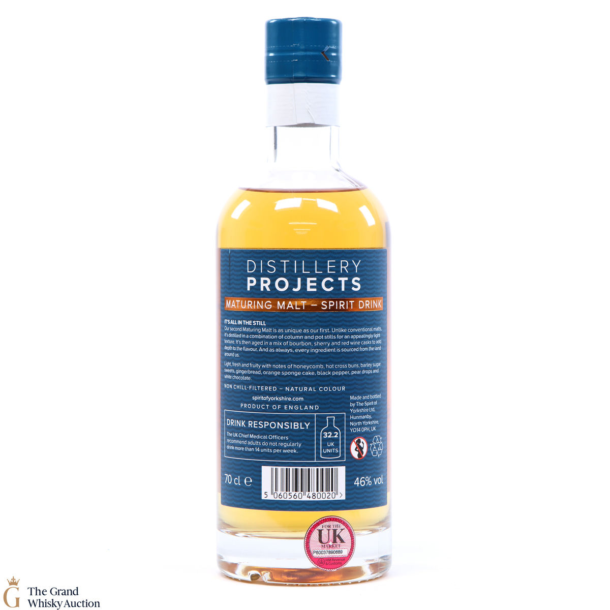 Spirit of Yorkshire Distillery Projects range was designed to explore what this Yorkshire spirit can be. Pre-whisky, focusing this on the ‘maturing malt’. The first four releases (DPs 001-004) formed a mini-series. These looked at the different cask types, distillation techniques, and how the two-spirit styles (pot/column) marry together.
