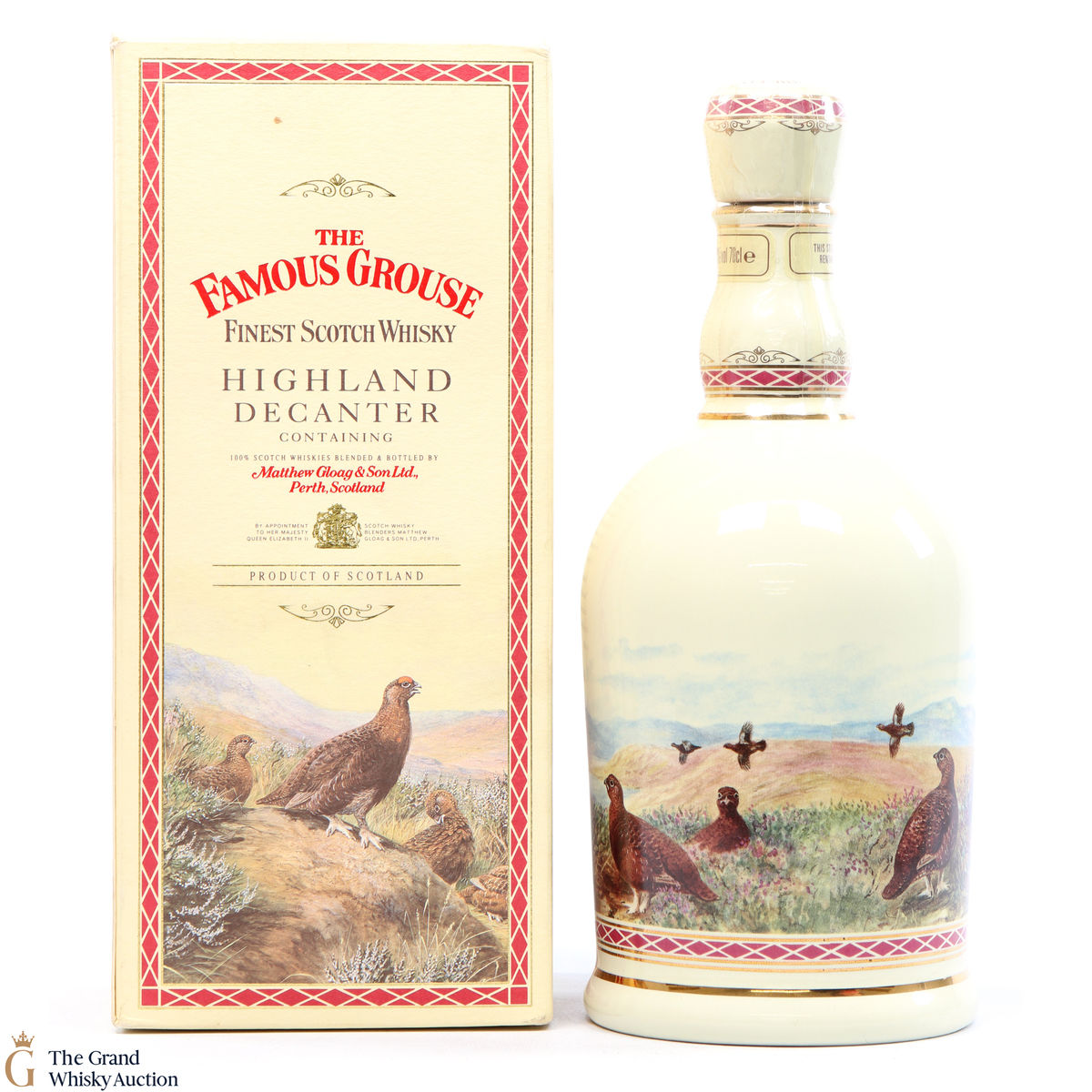 A bottle of Famous Grouse housed within a ceramic 'Highland' decanter. First blended by Matthew Gloag & Son in 1896, as of 2013, it has been the highest selling brand of whisky in Scotland since 1980.