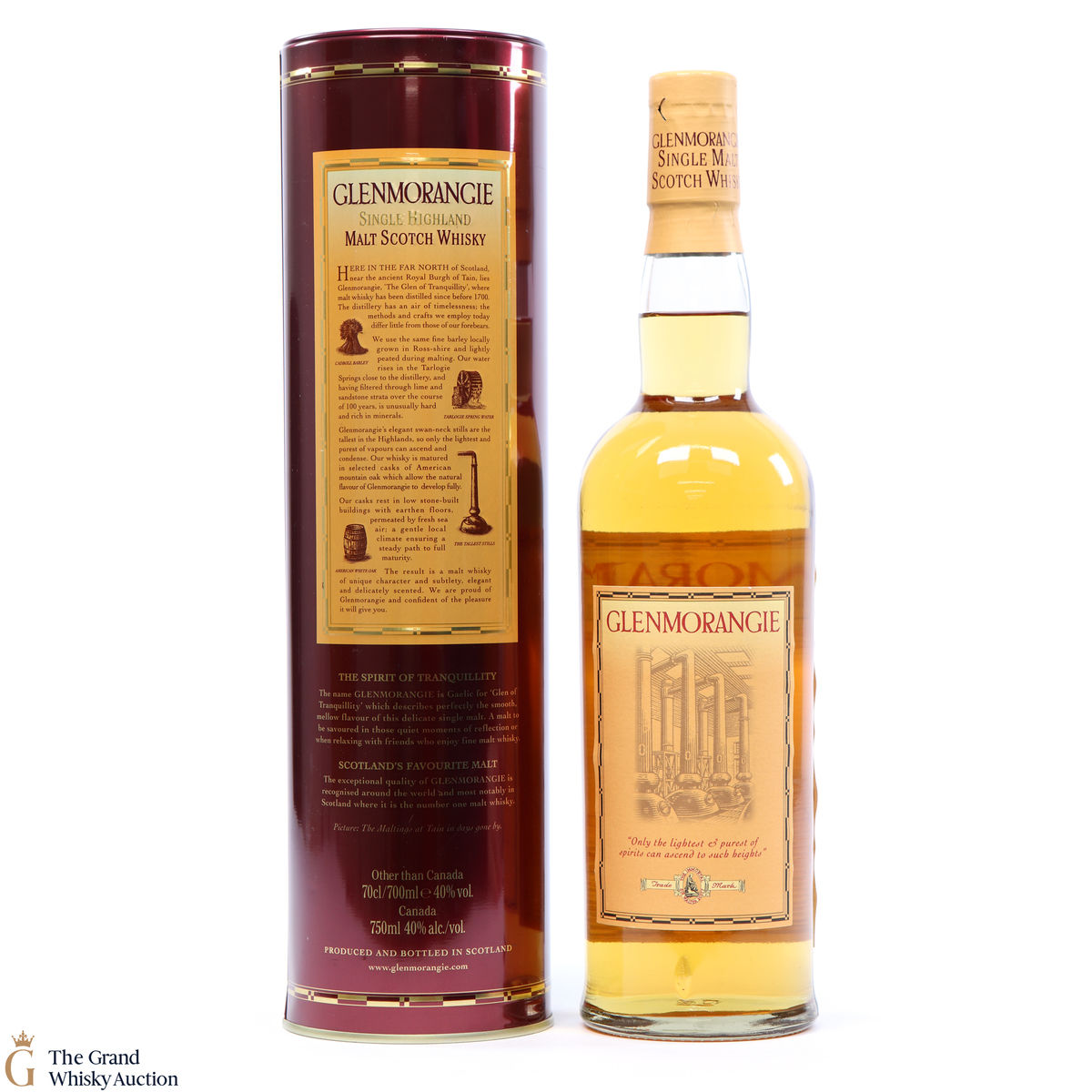 An older style bottling of Glenmorangie 10 year. Handcrafted by the sixteen men of Tain.