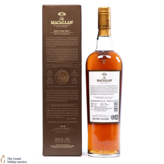 The Macallan Edition No. 1 is the debut expression in the Edition Series. This is a limited edition drawn from eight European and American oak cask styles selected for their unique characteristics.
