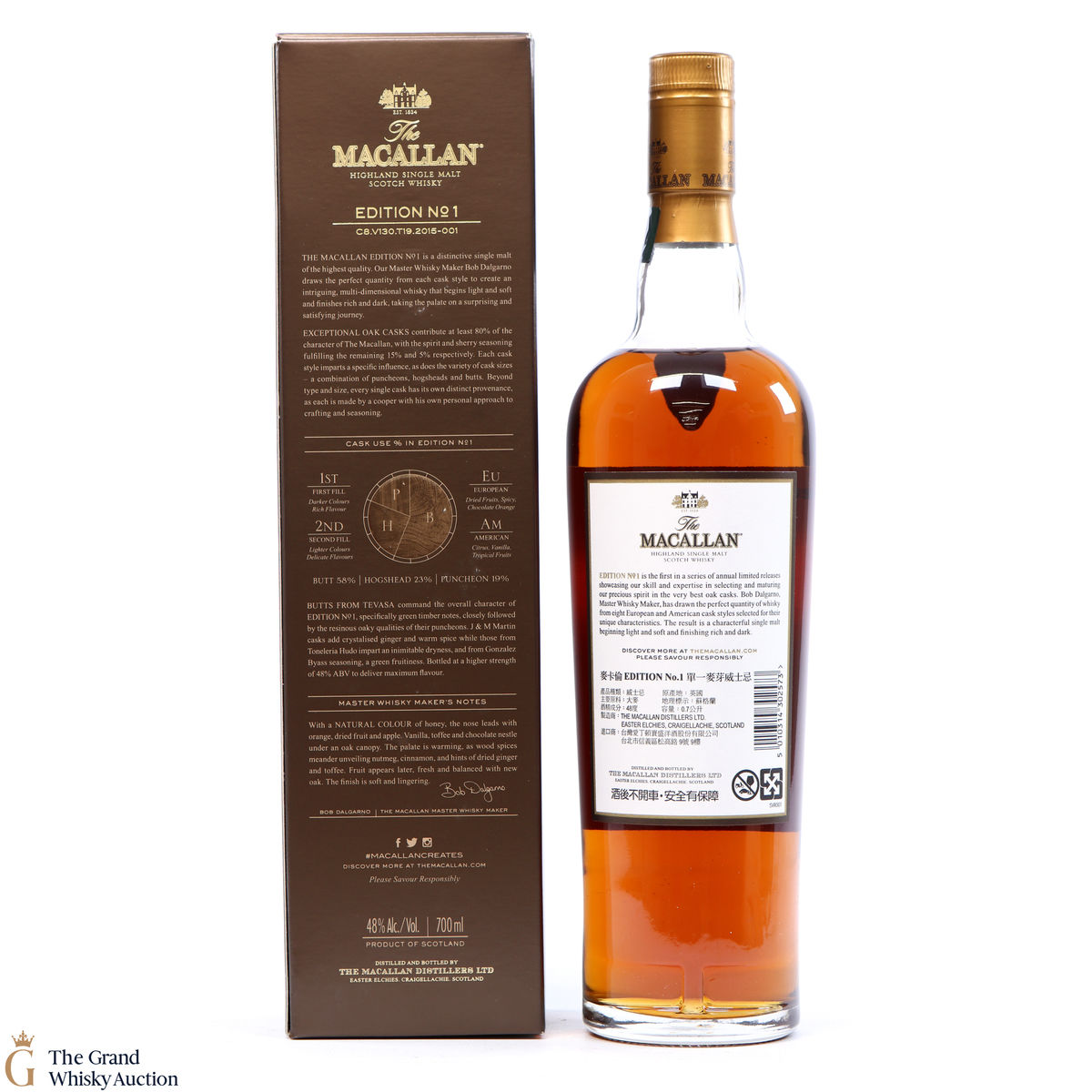The Macallan Edition No. 1 is the debut expression in the Edition Series. This is a limited edition drawn from eight European and American oak cask styles selected for their unique characteristics.