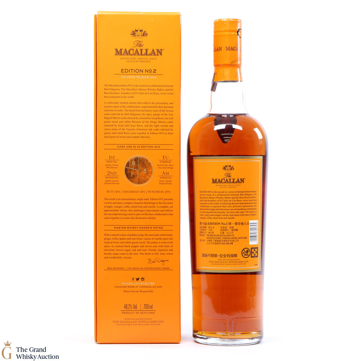 This is the second release from the Macallan Edition series. Edition No.2 is a collaboration between Macallan's master blender Bob Delgarno and legendary Spanish chefs Joan, Josep and Jordi Roca. The Rocas are the three brothers behind El Celler de Can Roca (named Best Restaurant in the World twice by Restaurant magazine). This single malt was drawn from a combination of sherry puncheons, butts and refill hogsheads.