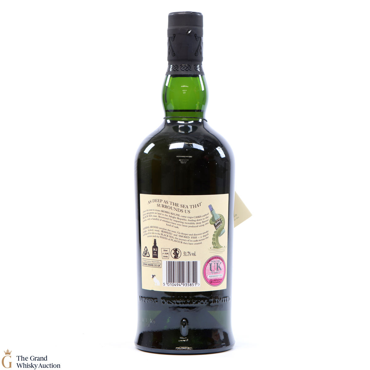 This is Committee exclusive release of Ardbeg Kelpie, a single malt released in 2017. It was matured in casks made from virgin Black Sea oak and more traditional bourbon casks. The Committee Release is bottled at the higher strength of 51.7% ABV (while the standard Ardbeg Kelpie has bottled at 46% ABV).