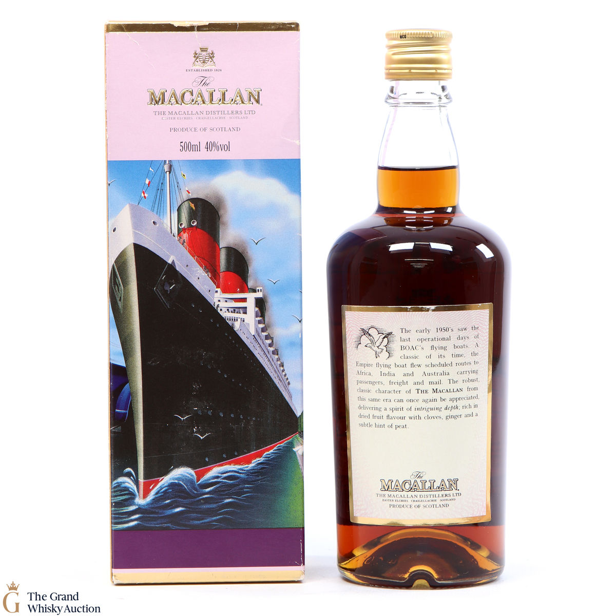 During the 1950s, Macallan whisky was as rich and spicy as modern-day Macallan, but with a hint of peat smoke. This was due to Spanish oak sherry casks becoming available again, following the disruption of the second world war. Macallan was ale to revert to using only first and second fill casks. 50cl, 40%.