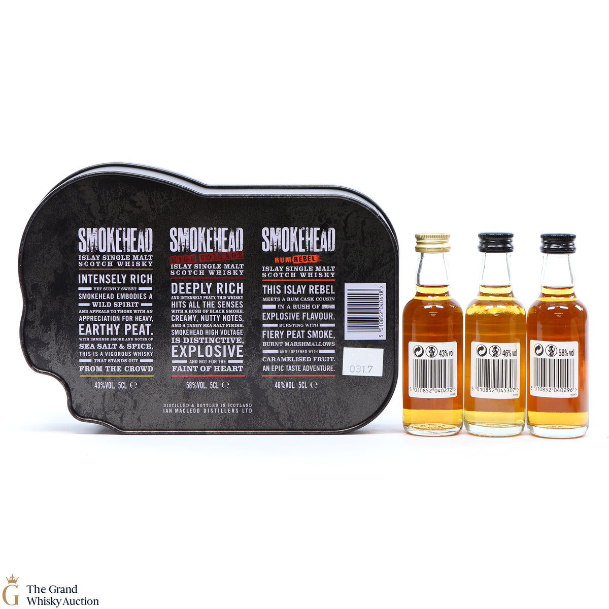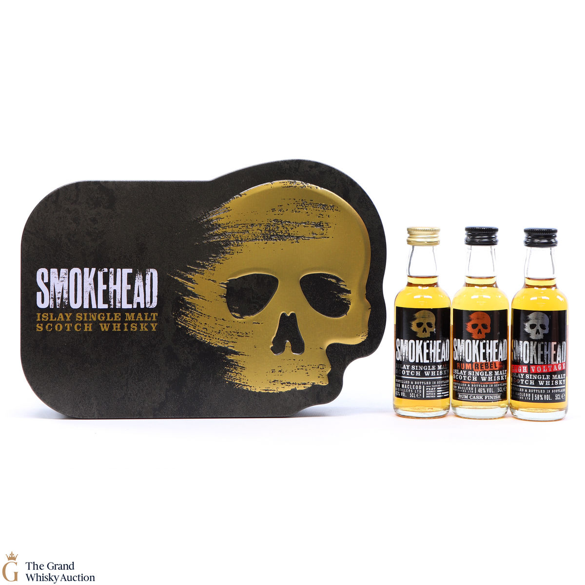 This gift tin contains 3 x 5cl Smokehead whisky bottlings in a special Smokehead case. This set contains the: