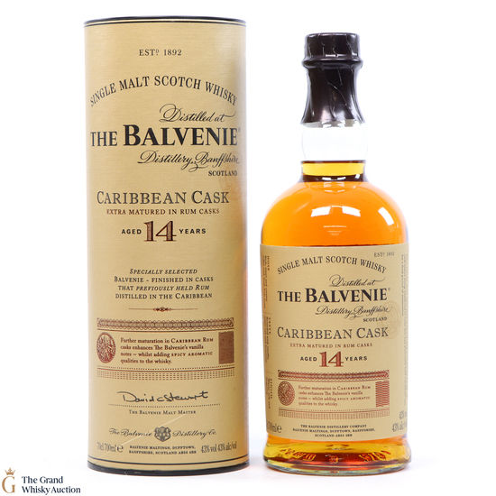 The Balvenie Caribbean Cask 14 year old has been matured in traditional oak whisky casks for 14 years, and then finished in casks that previously held Caribbean rum.