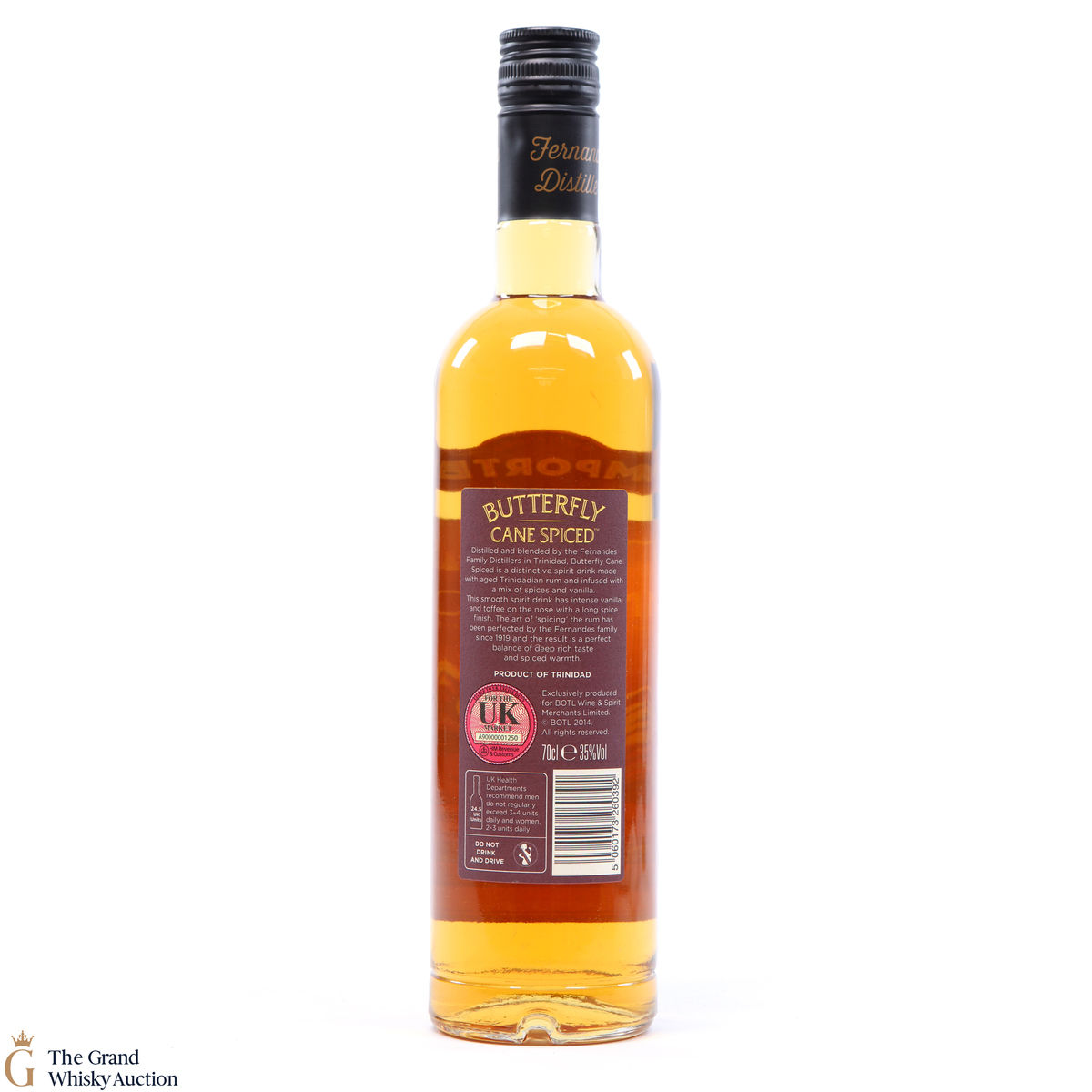 Distilled and blended by the Fernandes Family Distillers in Trinidad, Butterfly Caned Spiced is a distinctive spirit made with aged Trinidadian rum and infused with a mix of spices and vanilla.