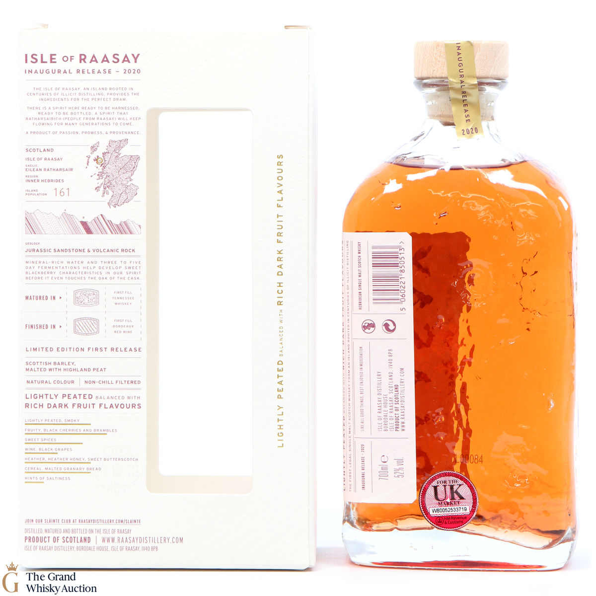 The inaugural release from the Isle of Raasay distillery is a limited edition release matured in first-fill American oak, and finished in 21 exclusive first fill Bordeaux red wine casks. They have created an elegant, lightly peated (15-20 Peat or Phenol Parts Per Million). Bottled at 52% and in a unique glass bottle which captures the island's geology.