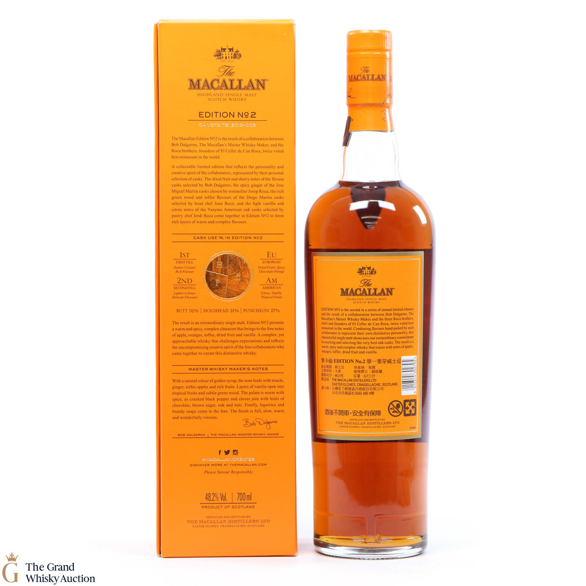 This is the second release from the Macallan Edition series. Edition No.2 is a collaboration between Macallan's master blender Bob Delgarno and legendary Spanish chefs Joan, Josep and Jordi Roca. The Rocas are the three brothers behind El Celler de Can Roca (named Best Restaurant in the World twice by Restaurant magazine). This single malt was drawn from a combination of sherry puncheons, butts and refill hogsheads.
