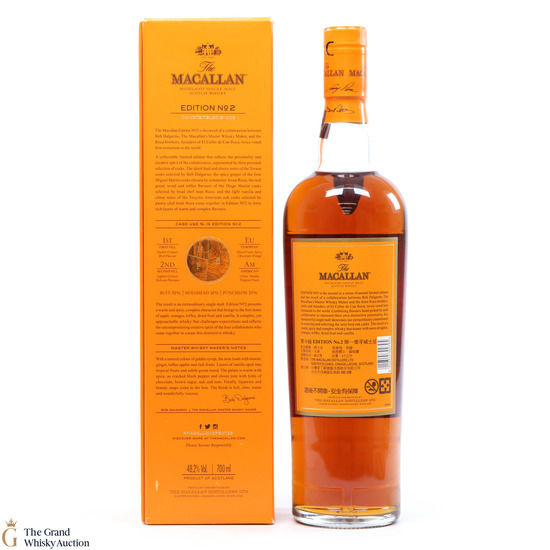 This is the second release from the Macallan Edition series. Edition No.2 is a collaboration between Macallan's master blender Bob Delgarno and legendary Spanish chefs Joan, Josep and Jordi Roca. The Rocas are the three brothers behind El Celler de Can Roca (named Best Restaurant in the World twice by Restaurant magazine). This single malt was drawn from a combination of sherry puncheons, butts and refill hogsheads.