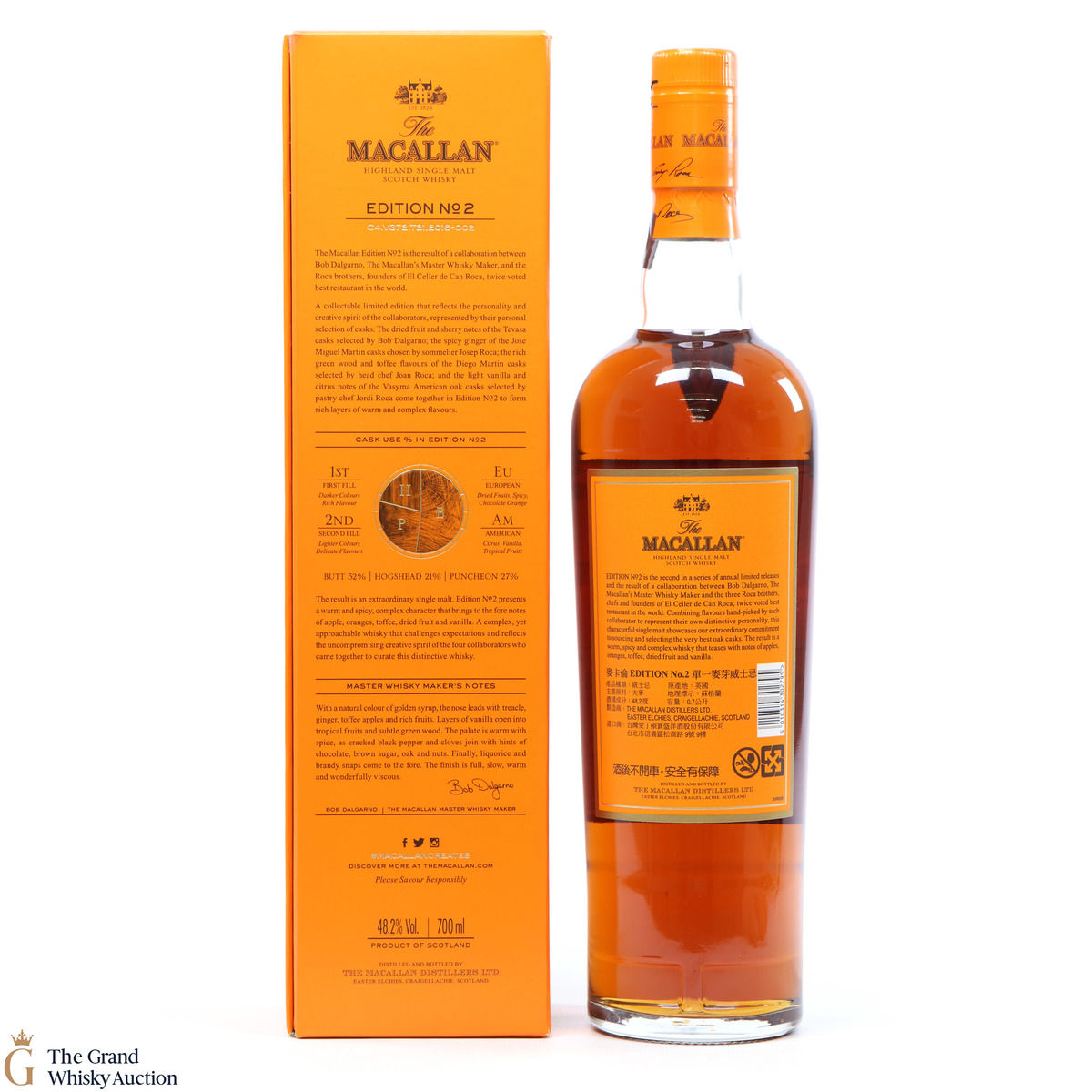 This is the second release from the Macallan Edition series. Edition No.2 is a collaboration between Macallan's master blender Bob Delgarno and legendary Spanish chefs Joan, Josep and Jordi Roca. The Rocas are the three brothers behind El Celler de Can Roca (named Best Restaurant in the World twice by Restaurant magazine). This single malt was drawn from a combination of sherry puncheons, butts and refill hogsheads.