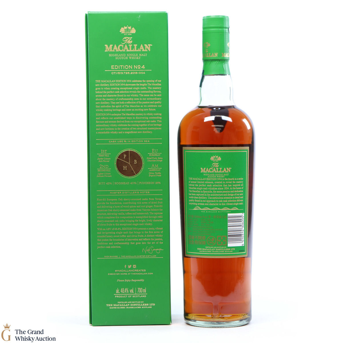 The fourth release in the Edition Series from The Macallan, this Speyside single malt is a celebration of the distillery's whisky making heritage, combining a unique selection of oak cask styles. Edition No.4 reflects the craftsmanship and pioneering design of the new Macallan distillery.