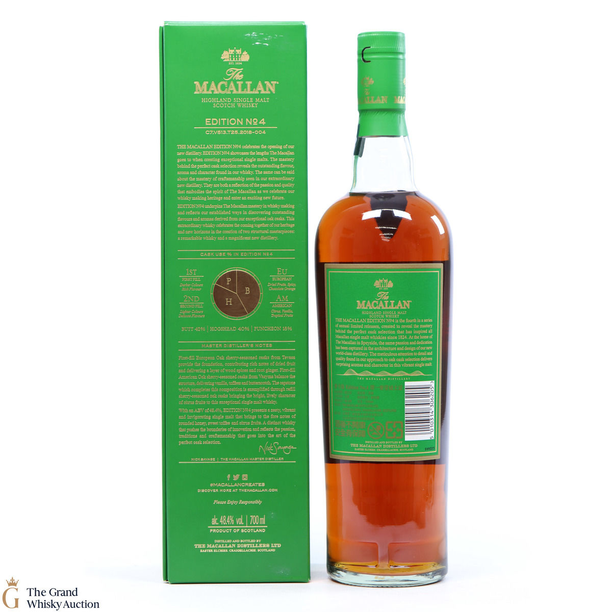 The fourth release in the Edition Series from The Macallan, this Speyside single malt is a celebration of the distillery's whisky making heritage, combining a unique selection of oak cask styles. Edition No.4 reflects the craftsmanship and pioneering design of the new Macallan distillery.
