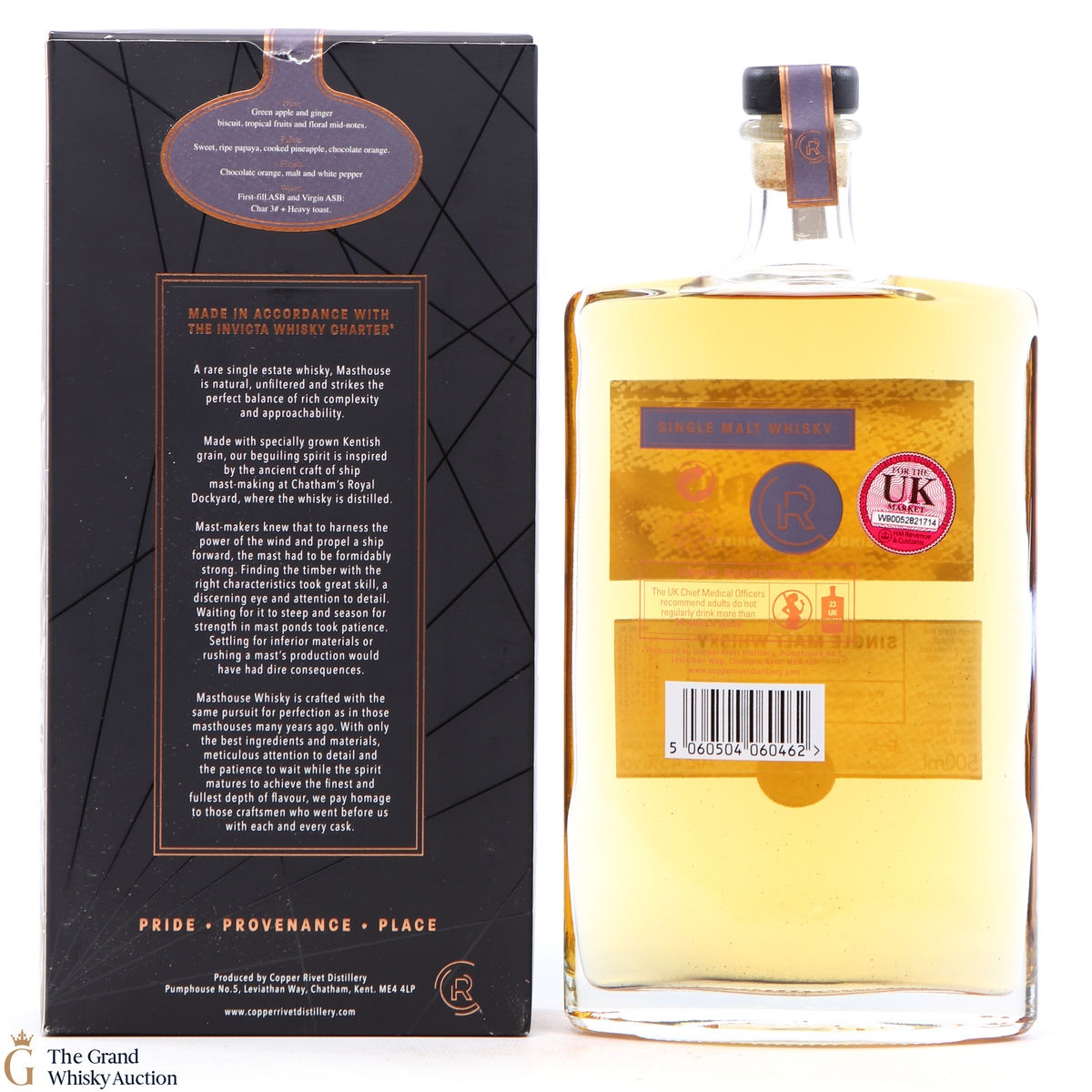 Masthouse Single Malt, made in accordance with the distillery's very own Invicta Whisky Charter. This expression is distilled from Kentish malted barley from the nearby Isle of Sheppey, and was aged in a combination of ex-bourbon and virgin American white oak barrels.