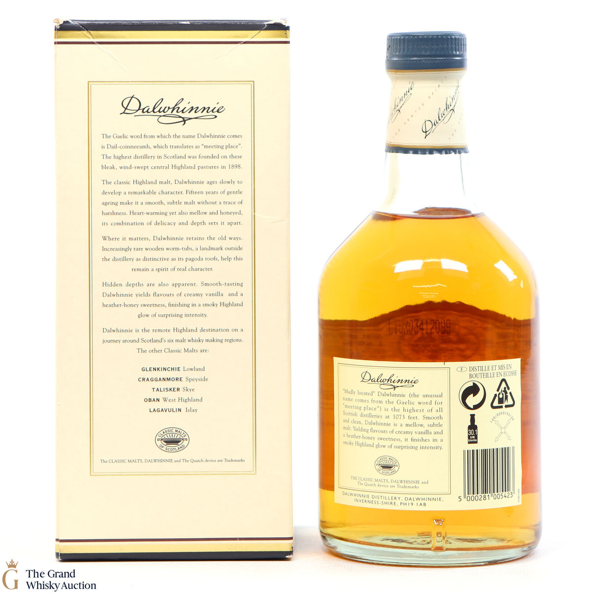 Due to the various ages of bottles and their seals, the condition of liquid is at the buyer's discretion and no claim can be lodged against failure/leakage in transit. Loss and breakage cover is available at 3% of the hammer price as standard. If the lot is not insured, no claim can be lodged against the courier or The Grand Whisky Auction for breakage or loss in transit.