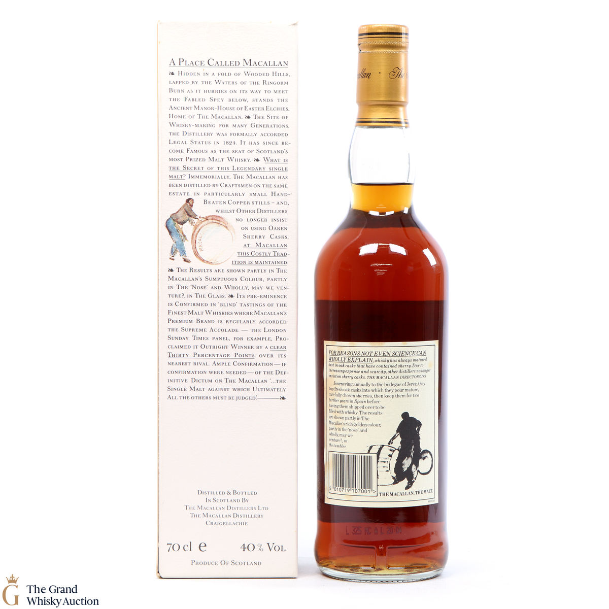 This is an older style of bottling of the famous Macallan 10-year-old malt whisky. It comes presented in the all-white box showing Easter Elchies House, which is increasingly hard to find.