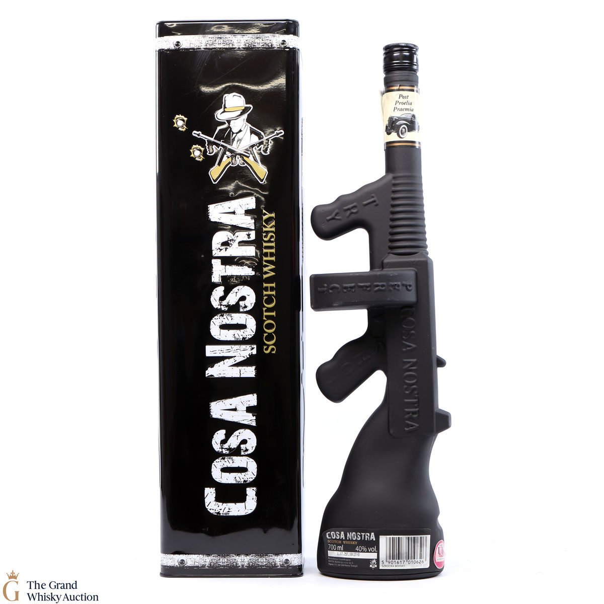 Cosa Nostra Scotch Whisky comes in a presentation bottle that is a replica of a 1920's vintage Tommy Gun from the era of legendary Al Capone and Lucky Luciano.
