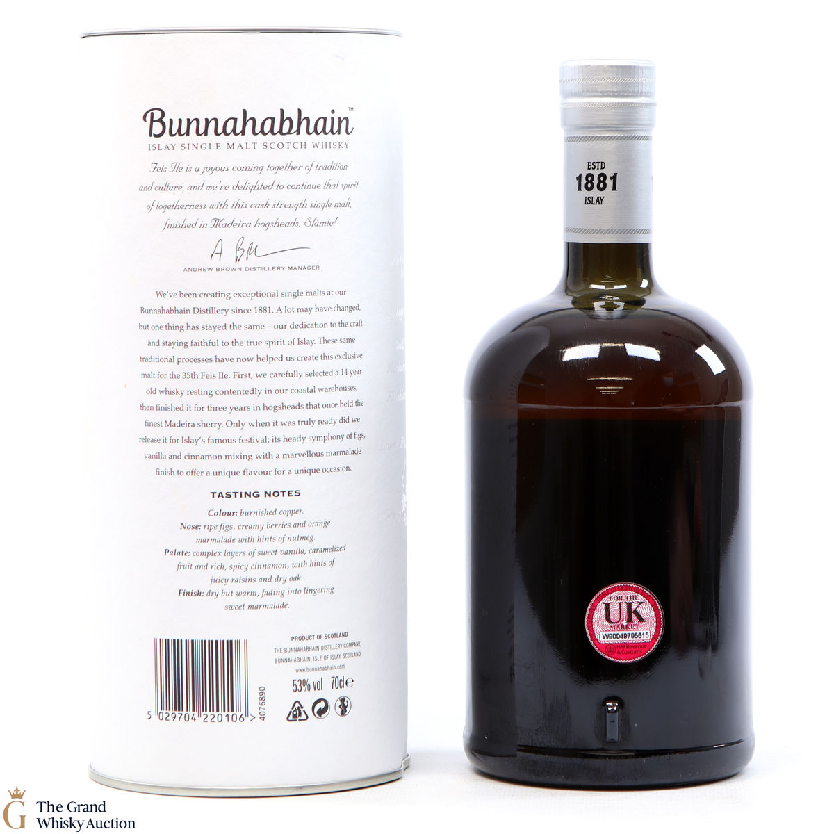 This limited edition single malt from Bunnahabhain Distillery was matured for 14 years in classic bourbon barrels, then finished in Maderia casks for another three years. Bottled at 53%, and released by Bunnahabhain for the 25th anniversary of Fèis Ìle - Fèis Ìle 2020. This is one of only 1164 bottles produced.