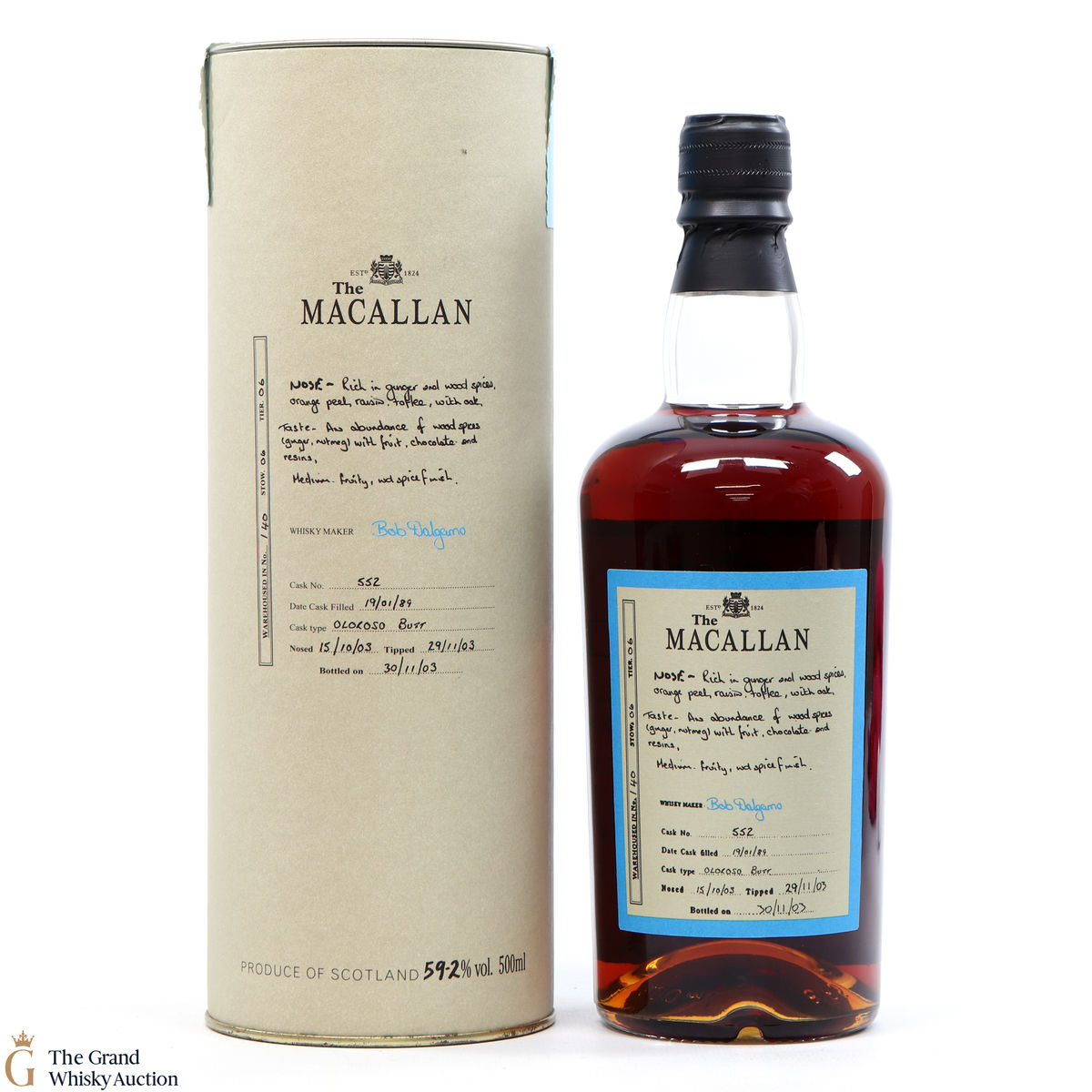 A 1989 14-year-old Exceptional Single Cask from Macallan. Distilled on 19 January and aged in an oloroso butt, before being bottled on 30 November 2003 as the 5th ESC.