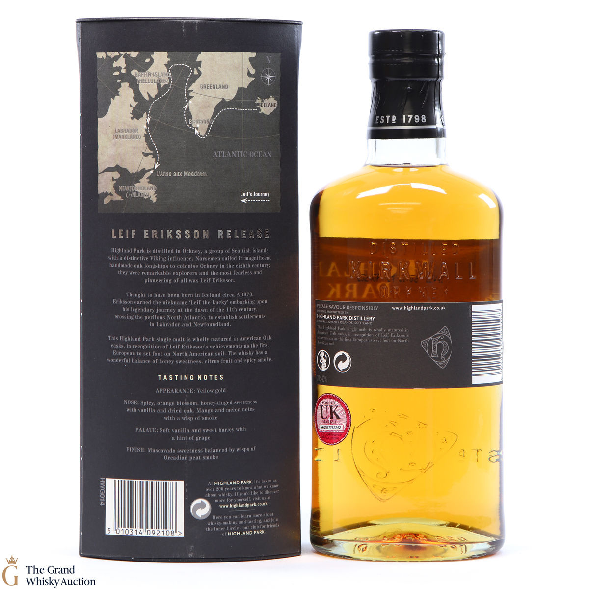 Launched in March 2010, for the travel retail market, Highland Park Leif Eriksson Limited Edition was released to celebrate the first European to reach America over a thousand years ago. The single malt was matured in American oak casks, both ex-bourbon and ex-sherry in recognition of Leif Eriksson, a pioneering Viking explorer, as the first European man to set foot on American soil.
