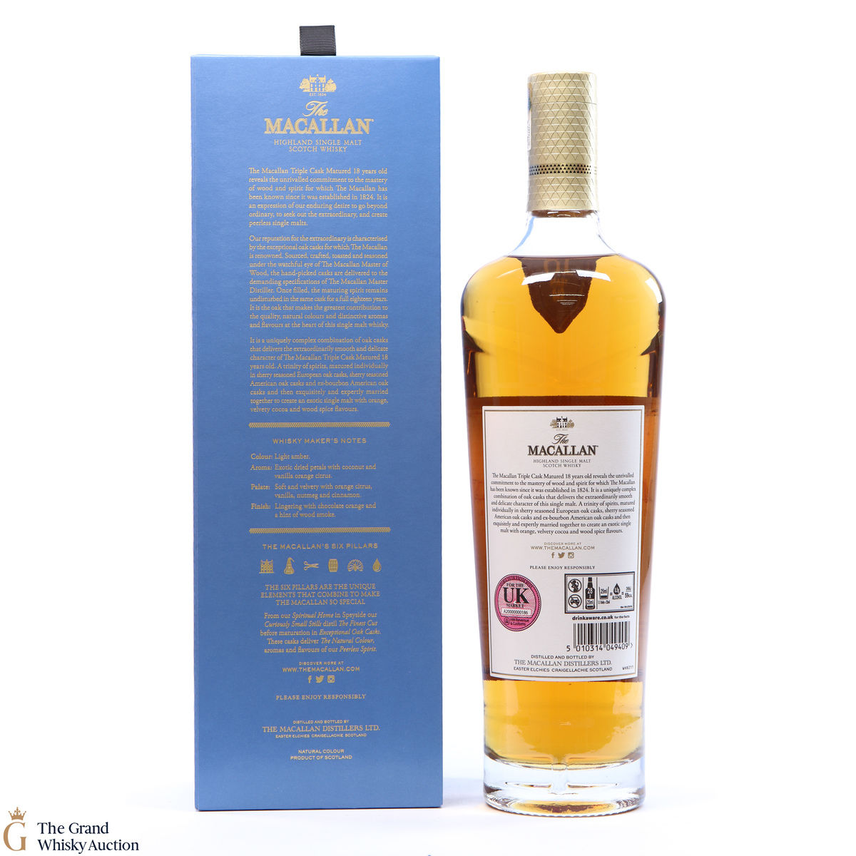 This 18 year old Macallan single malt was released in 2018 and sits is at the top of the Triple Cask range (which replaced the Fine Oak range). The whisky was matured in a combination of European sherry seasoned casks, American sherry seasoned casks and American ex-bourbon casks. This expression boasts bountiful notes of vanilla, dried fruit and woody spice.