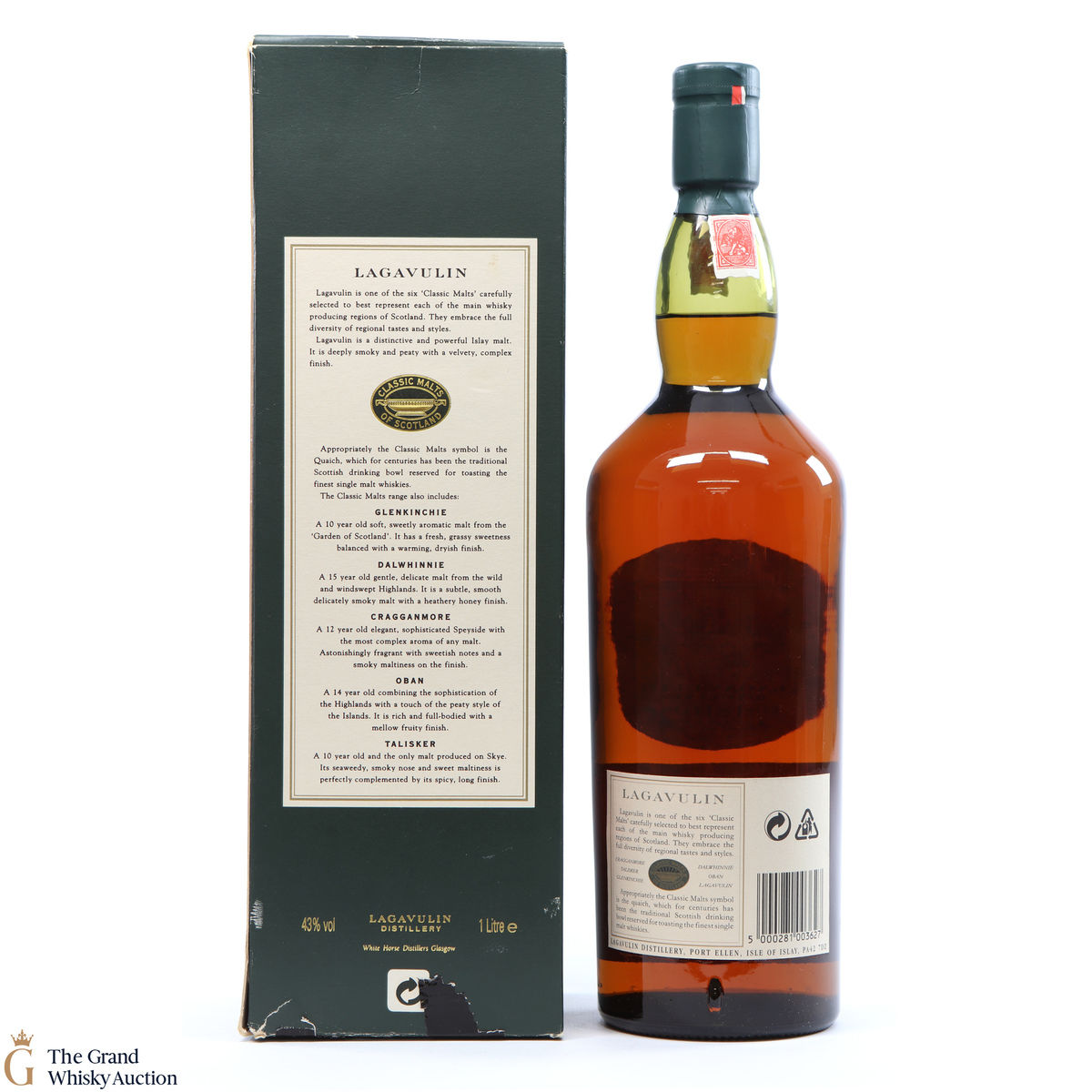 Due to the various ages of bottles and their seals, the condition of liquid is at the buyer's discretion and no claim can be lodged against failure/leakage in transit. Loss and breakage cover is available at 3% of the hammer price as standard. If the lot is not insured, no claim can be lodged against the courier or The Grand Whisky Auction for breakage or loss in transit.
