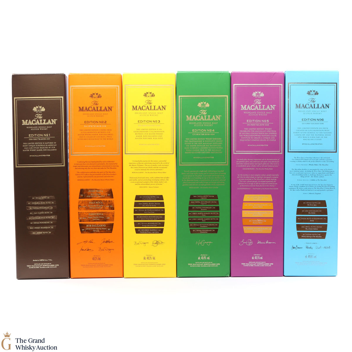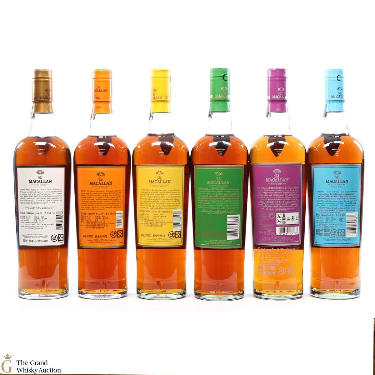 This lot brings together the Macallan Edition set to date, comprising of Edition no. 1, 2, 3 4, 5 & 6 in the annual limited edition series.
