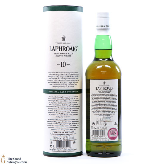 This original cask strength bottling of the medicinal 10 year old from Islay's bestselling distillery, Laphroaig. In making Laphroaig, malted barley is dried over a peat fire. The smoke from this peat, found only on Islay, gives Laphroaig its particularly rich flavour.