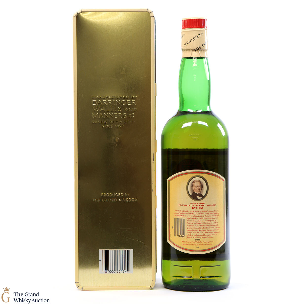 This bottling Glenlivet 12 year old single malt is said to be from the 1980's. It comes with a beautiful presentation tin depicting the old course at St Andrews, one of Scotlands greatest golf courses. It was released as part of a 6 part series that each celebrates a Scottish golf course - including Turnberry, Royal Dornoch, Troon, Muirfield and Carnoustie. This is a 75cl bottling.