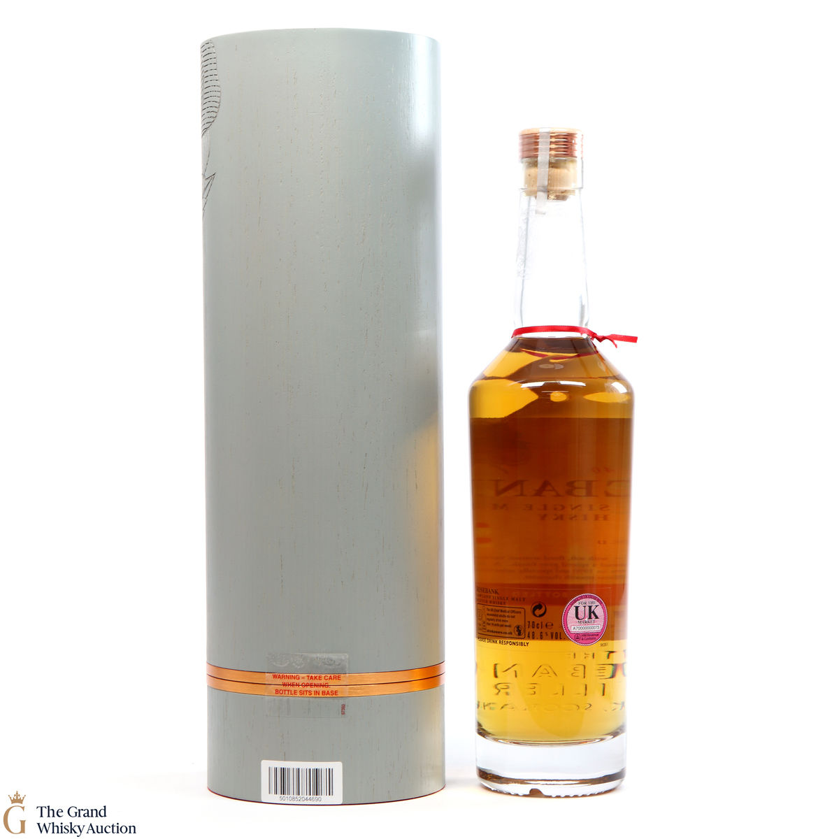 Due to the various ages of bottles and their seals, the condition of liquid is at the buyer's discretion and no claim can be lodged against failure/leakage in transit. Loss and breakage cover is available at 3% of the hammer price as standard. If the lot is not insured, no claim can be lodged against the courier or The Grand Whisky Auction for breakage or loss in transit.