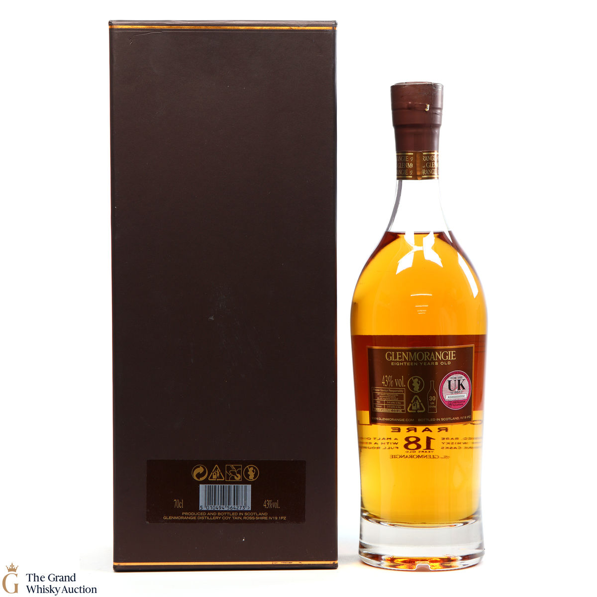 This bottle is an 18 year old Extremely Rare, Highland single malt produced by Glenmorangie. It has been perfected by the sixteen men of Tain who have specially aged this bottle for 18 years in superior oak casks and a period in Oloroso Sherry casks.