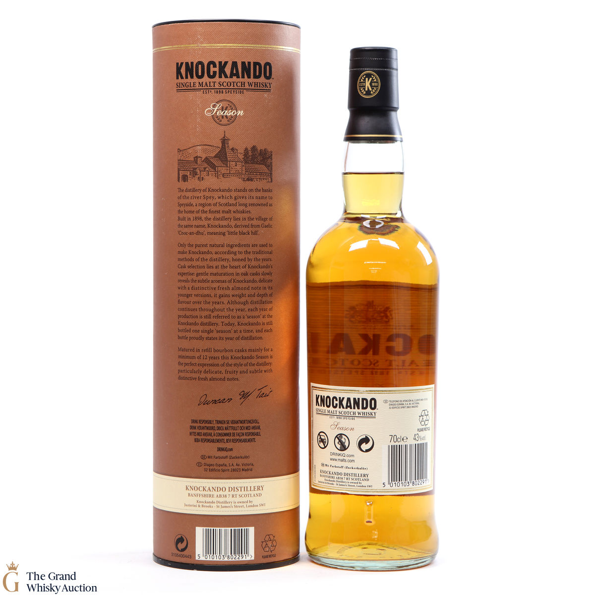 Knockando in Gaelic means 'little black hill'. The Knockando distillery is based in Speyside, Scotland. This single malt was distilled in 2000 and was matured for 12 years in a bourbon cask before being bottled.