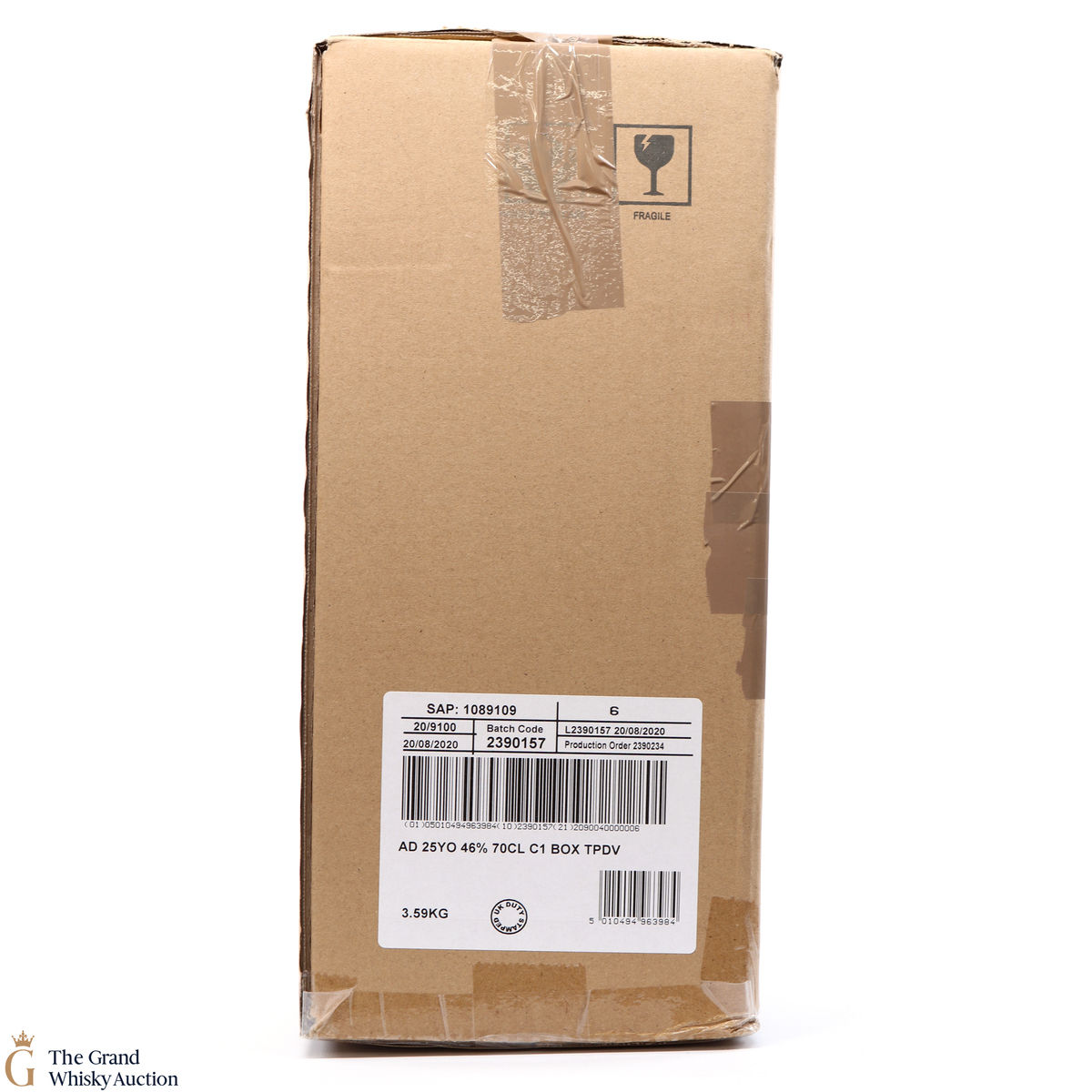 Due to the various ages of bottles and their seals, the condition of liquid is at the buyer's discretion and no claim can be lodged against failure/leakage in transit. Loss and breakage cover is available at 3% of the hammer price as standard. If the lot is not insured, no claim can be lodged against the courier or The Grand Whisky Auction for breakage or loss in transit.