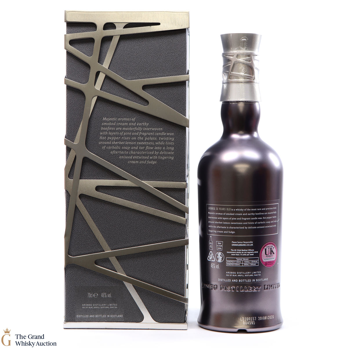 This guaranteed 25 Year old by Ardbeg has been produced from incredibly rare casks which were filled during some of the distillery's darkest day's. Known for its peated whiskies this is one of Ardbegs oldest aged whisky to join the core range. This expression proves that age cannot tame Ardbeg’s smoky power, but also that it can yield some of the most complex and majestic flavours ever from Ardbeg Distillery.