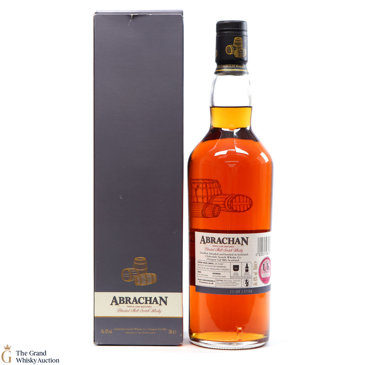 Due to the various ages of bottles and their seals, the condition of liquid is at the buyer's discretion and no claim can be lodged against failure/leakage in transit. Loss and breakage cover is available at 3% of the hammer price as standard. If the lot is not insured, no claim can be lodged against the courier or The Grand Whisky Auction for breakage or loss in transit.