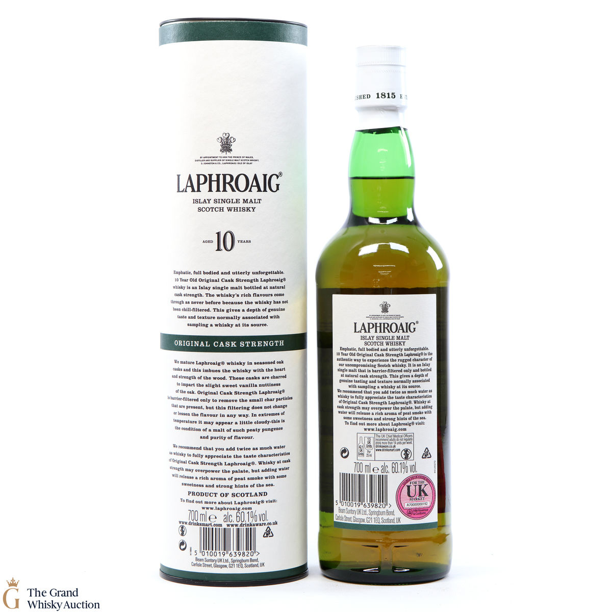 This bottling is from batch 012, the original cask strength bottling of the medicinal 10-year-old from Islay's bestselling distillery, Laphroaig. In making Laphroaig, malted barley is dried over a peat fire. The smoke from this peat, found only on Islay, gives Laphroaig its particularly rich flavour. This release was bottled at 60.1% in February 2020.