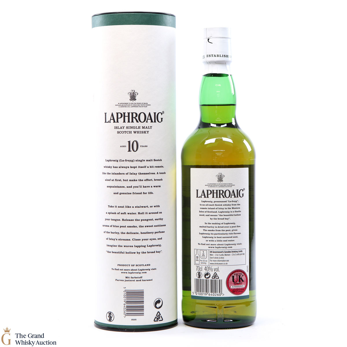 A 70cl of the medicinal 10 year old from Islay's bestselling distillery, Laphroaig. In making Laphroaig, malted barley is dried over a peat fire. The smoke from this peat, found only on Islay, gives Laphroaig its particularly rich flavour.