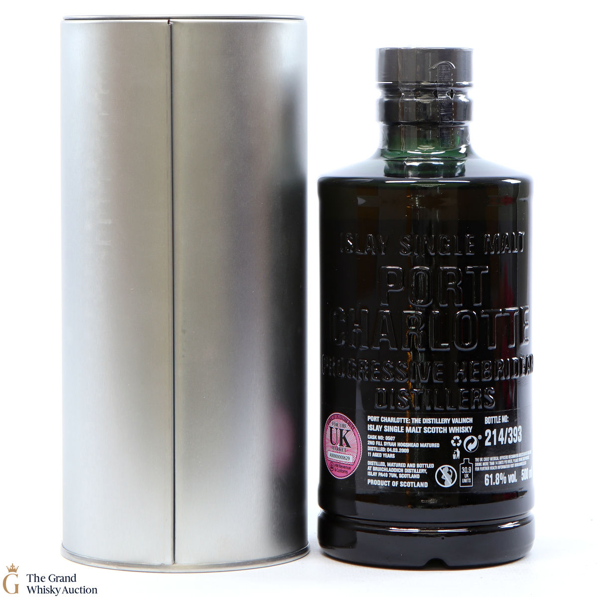 From Bruichladdich, this Port Charlotte Valinch single cask is an 11-year-old distilled in Islay in 2009, matured in 2nd fill Syrah cask #0507. This is a distillery exclusive release of 393 bottles at 61.8% ABV. This is a 50cl bottling.