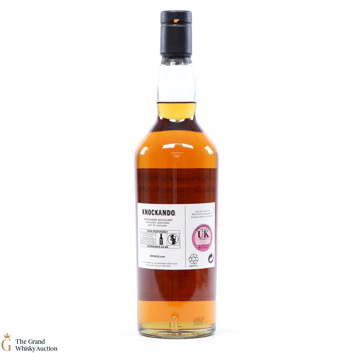 Due to the various ages of bottles and their seals, the condition of liquid is at the buyer's discretion and no claim can be lodged against failure/leakage in transit. Loss and breakage cover is available at 3% of the hammer price as standard. If the lot is not insured, no claim can be lodged against the courier or The Grand Whisky Auction for breakage or loss in transit.