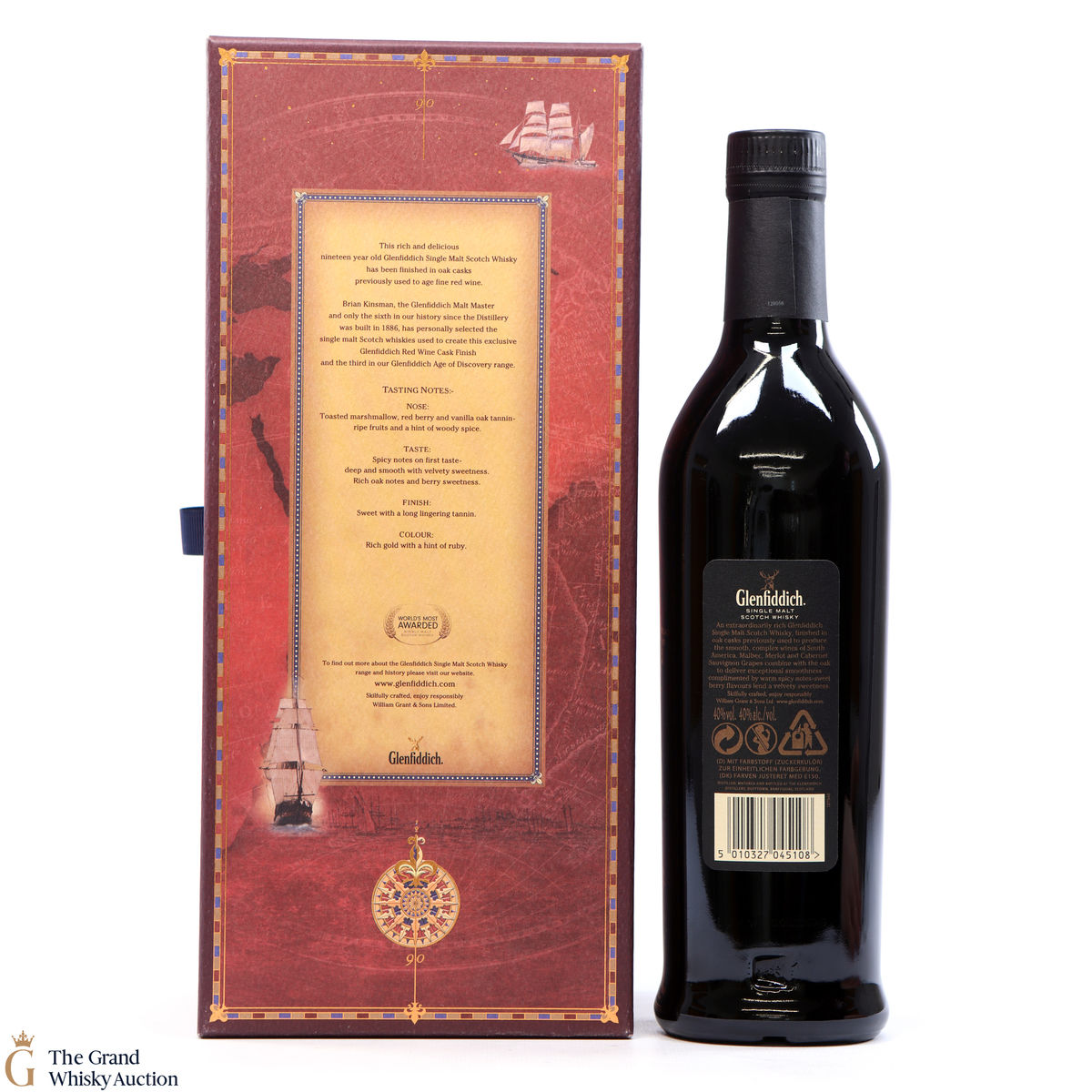This is the third release in the Glenfiddich's Travel Retail Age of Discovery series. This is a 19 year old single malt Scotch whisky has been finished in South American red wine casks It was created to commemorate the 1831 voyage of the HMS Beagle, which travelled to South America so Charles Darwin could collect fossils, helping him with his theory of evolution. It is a rich, spicy and warm whisky.